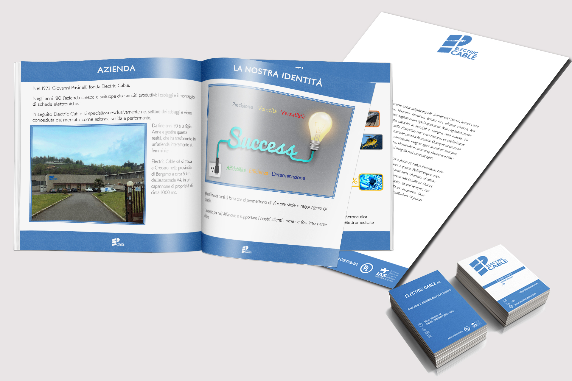 Partiti dalla creazione della Brand Identity con biglietti da visita, Carta intestata, Packaging, siamo passati alla Presentazione aziendale, al Company profile, per arrivare al sito web electriccablesrl.com e alla gestione della pagine aziendali sui social.